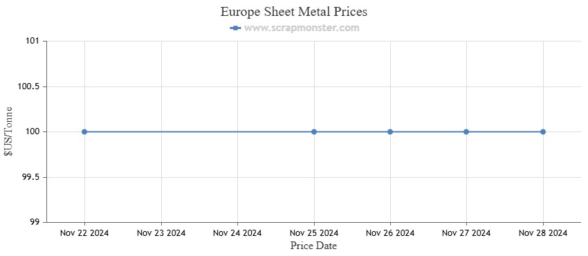 The price variation in Sheet Metal scrap over the one-week period from November 22 to November 28, 2024 is provided in the below chart.