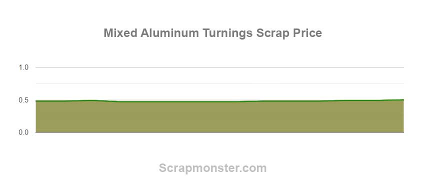 The Mixed Aluminum Turnings prices recorded an increase by 4.17% over the previous week. The prices edged higher by $0.02 per Lb to close at $0.50 per Lb on Index. The chart below represents the price movement in Mixed Aluminum Turnings during the past week: