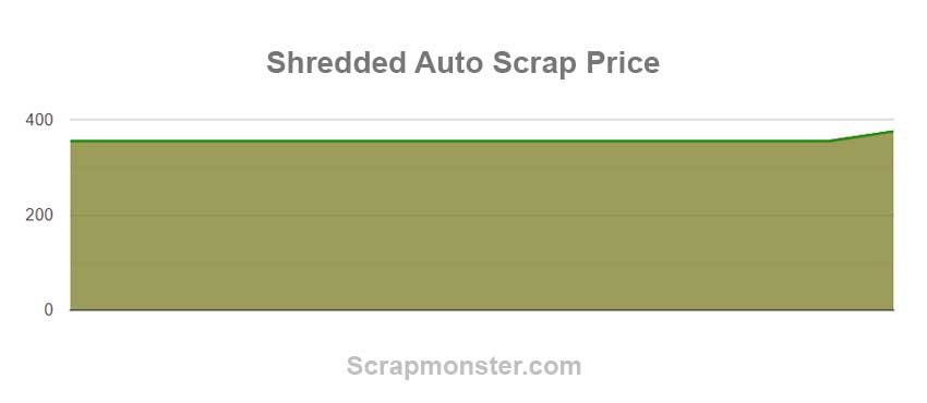The prices of HMS 80/20, Sheet Metal, #1 Busheling and #1 Bundle too posted gains from prior-week levels. Compared to last week, Shredded Auto Scrap, whose weekly price chart is provided below, witnessed smallest surge in prices.