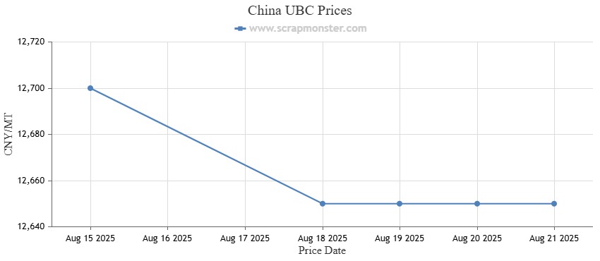 In the meantime, prices of Aluminum Radiators, Al/Cu Radiators, Al/Cu Radiators/Fe, Aluminum Radiators/Fe, Aluminum Transformers and Breakage 50% Recovery were flat during the week ending August 21, 2025.