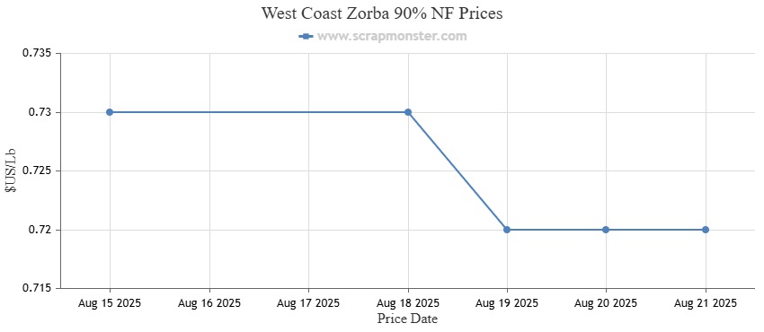 Also, the week witnessed dip in prices of 6061 Extrusions and Zorba 90% NF to $0.70 per Lb and $0.71 per Lb respectively.