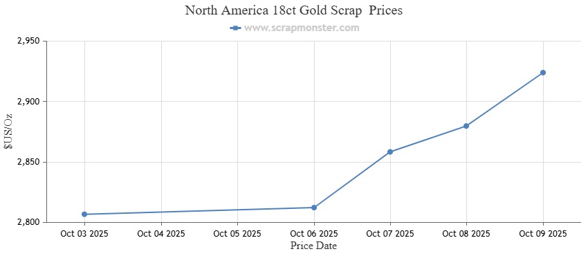SEATTLE (Scrap Monster): The North American scrap gold, silver and platinum prices - hallmarked and non- hallmarked soared during the previous week (October 3 to 9, 2025) on the ScrapMonster Price Index.