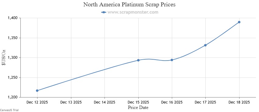 Platinum scrap finished the week at $1,389.71 per ounce, marking a surge of 14.2% from its opening level of $1,216.91 per ounce, as depicted in the chart provided below: