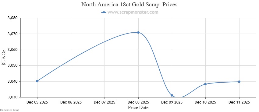 18-carat gold scrap registered a deeper weekly decline of $0.33 per ounce, while 22-carat material fell by $0.39 per pound. The chart below depicts the weekly price movement in 18-carat gold scrap: