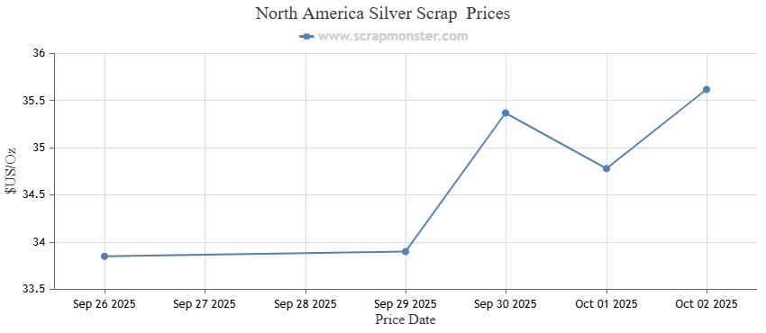 The weekly price movement in silver scrap prices is provided by the following chart: