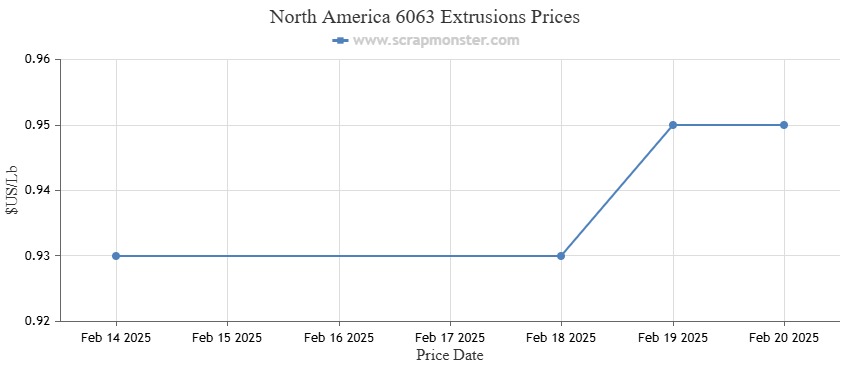 Over the past week, E.C. Aluminum Wire's price witnessed an increase of 2.52% on the Index. In comparison to the previous week, the price of 6063 Extrusions was up by 2.15% during the week ending February 20, 2025. The Index indicated 2.53% jump in Old Cast pricing. Also, during the previous week, UBC's prices increased by 2.50%, from $0.80 per Lb to $0.82 per Lb.