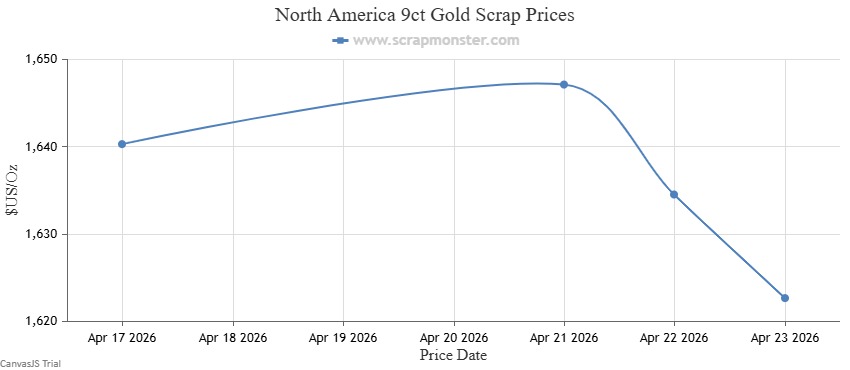 SEATTLE (Scrap Monster): North American scrap prices for gold and platinum—across both hallmarked and non-hallmarked categories—recorded modest declines during the April 17-23, 2026 period on the ScrapMonster Price Index.