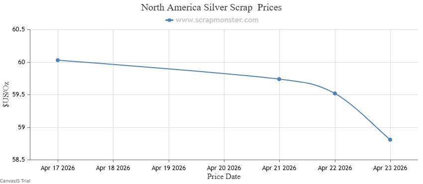 Silver scrap prices declined slightly by about 2%, mainly due to weaker demand and increased scrap supply.