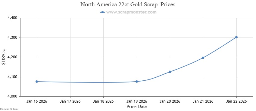 SEATTLE (Scrap Monster): North American scrap prices for gold, silver, and platinum—across both hallmarked and non-hallmarked categories—recorded notable gains during the January 16–22, 2026 period on the ScrapMonster Price Index.