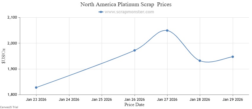 Across the wider precious metals scrap complex, silver prices surged, climbing 20.8 percent to close at $84.98 per ounce. Platinum followed suit, recording a solid 6.54 percent weekly gain to finish at $1,947.49 per ounce, reinforcing the overall strength seen across the precious metals recycling market.