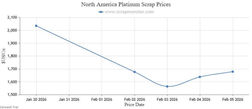 SEATTLE (Scrap Monster): North American precious metal scrap prices, including gold, silver, and platinum in both hallmarked and non-hallmarked forms, posted modest declines on the ScrapMonster Price Index during the January 30– February 5, 2026 period.