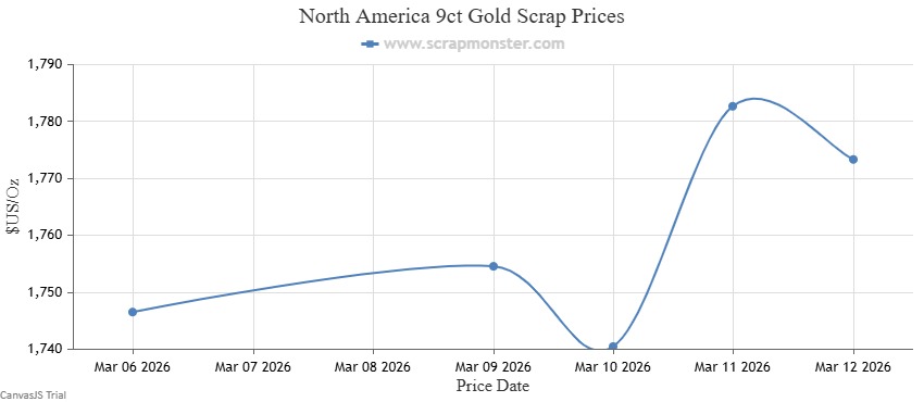 Lower-grade 9-carat scrap gold also moved higher, registering a week-over-week increase of 1.54%, as shown in the accompanying chart.