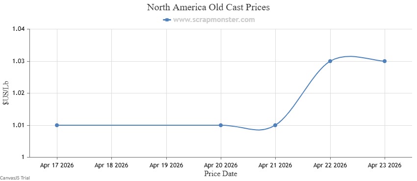 The prices of New Zinc Die Cast witnessed no week-over-week variation on the Scrap Monster Price Index as of Thursday, April 23, 2026. Similarly, the Old Zinc Die Cast prices were unchanged week-over-week.