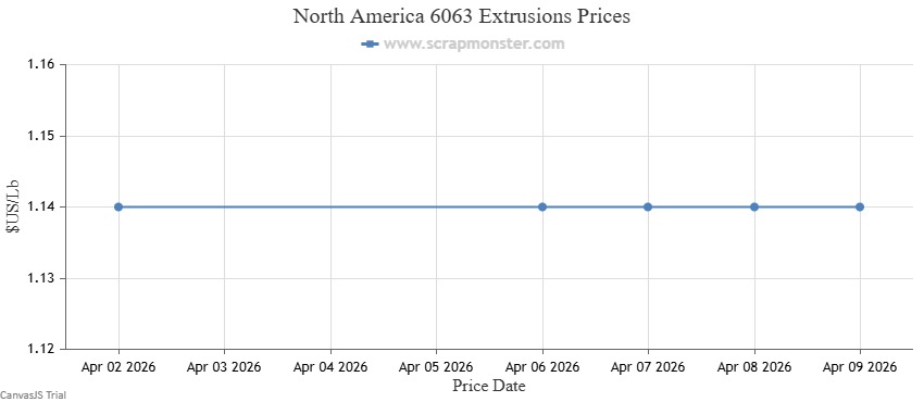 North America Aluminum Scrap Prices: Over the past week, E.C. Aluminum Wire saw a modest uptick in prices, climbing by ↑0.63% to finish higher on the Scrap Monster Price Index compared with the previous week. 6063 Extrusions closed the week, unchanged in prices upon comparison with the prior week. Old Cast experienced no variation in prices. Also, UBC prices held steady over the same period.