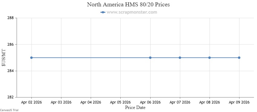 The table below provides weekly price variations in #1 HMS, Shredded Auto Scrap, HMS 80/20, and #1 Busheling.