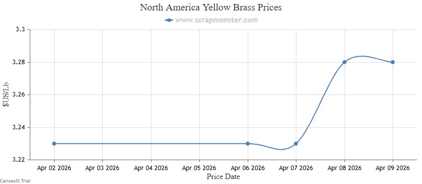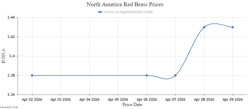 The price of Red Brass on the Scrap Monster Price Index recorded an increase of ↑1.48% as of Thursday, April 9, 2026. Yellow Brass prices also jumped higher by ↑1.55% on the Index.