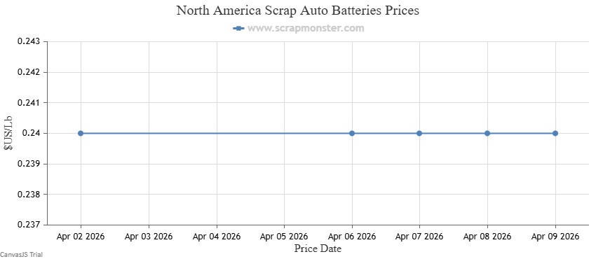 The table below provides weekly price fluctuations in Scrap Auto Batteries.