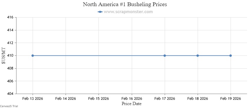 On the Scrap Monster Price Index, #1 HMS remained unchanged as of Thursday, February 19, 2026. Shredded Auto Scrap prices were also steady week-on-week. Similarly, HMS 80/20 showed no price movement by the close of the week, while #1 Busheling held firm over the same period.