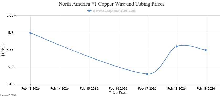 On the Scrap Monster Price Index, #1 Copper Bare Bright fell by $0.05 per pound as of Thursday, February 19, 2026, reflecting a ↓0.91% week-on-week decline. #1 Copper Wire & Tubing also eased by $0.05 per pound, down ↓0.93% from the previous week. Meanwhile, #2 Copper Wire and Tubing declined ↓0.94%, ending the week on a softer footing.