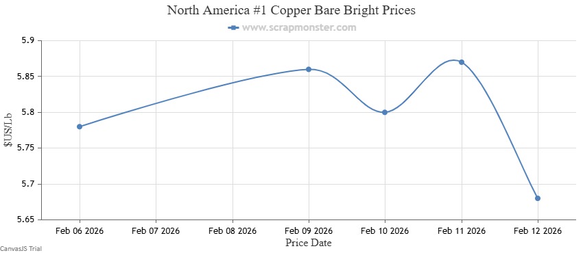 #1 Copper Bare Bright’s prices on the Scrap Monster Price Index dropped by $0.10 per pound as of Thursday, February 12, 2026, a weekly fall of ↓1.72%. #1 Copper Wire & Tubing inched lower by $0.10 per pound, registering a decline by ↓1.75% from the prior week. #2 Copper Wire and Tubing prices had recorded a dip of ↓1.78% as at the end of the week.