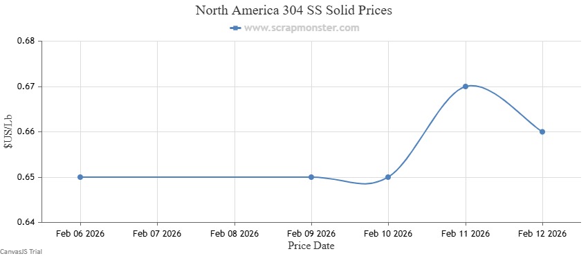 The table below provides weekly price fluctuations in 304 SS Solid scrap.