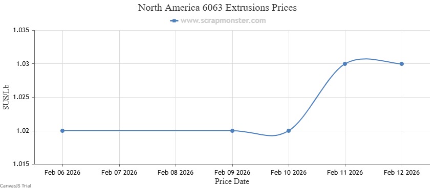 On the Scrap Monster Price Index , E.C. Aluminum Wire prices surged ↑2.19% as of Thursday, February 12, 2026. 6063 Extrusions posted a ↑0.98% increase compared to the prior week. Old Cast prices advanced ↑1.12% over the same period, while UBC values rose ↑1.11% on a week-over-week basis.