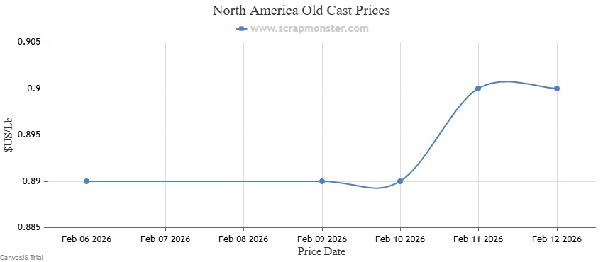 The prices of New Zinc Die Cast witnessed week-over-week jump of ↑1.20% on the Scrap Monster Price Index as of Thursday, February 12, 2026. Similarly, the Old Zinc Die Cast prices went higher by ↑1.43% week-over-week.