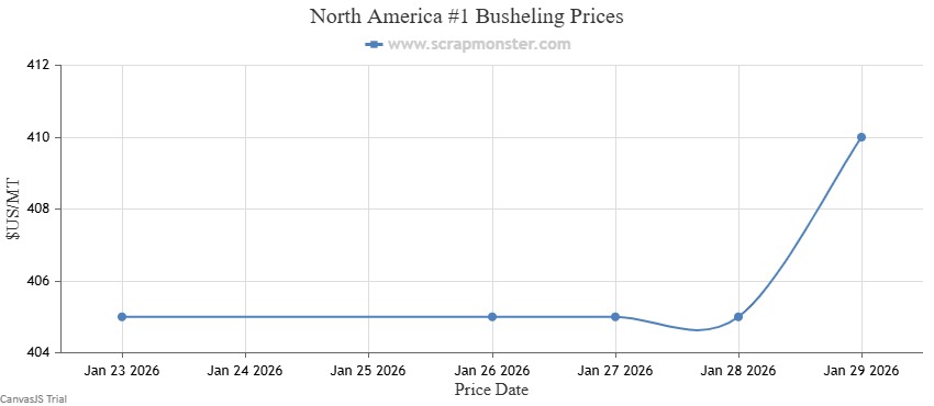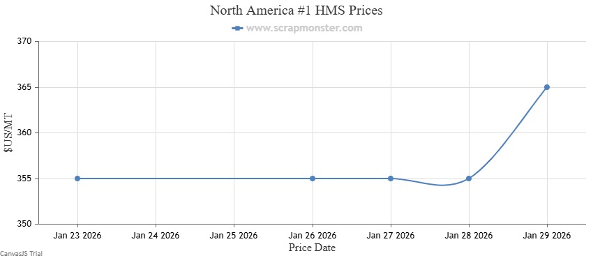 The price of #1 HMS on the Scrap Monster Price Index reported a jump of 2.82% as of Thursday, January 29, 2026. Shredded Auto Scrap prices were up by $15 per MT on the Index upon comparison with the prior week. By the end of the week, the price of HMS 80/20 had increased by 1.79%. #1 Busheling prices also were up by 1.23% over the previous week.