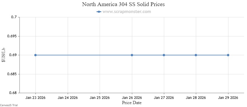 The price of 304 SS Solid on the Scrap Monster Price Index recorded no change as of Thursday, January 29, 2026.