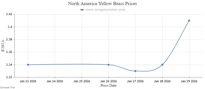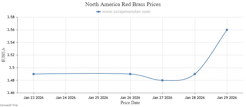 The price of Red Brass on the Scrap Monster Price Index recorded an increase of 2.01% as of Thursday, January 29, 2026. Yellow Brass prices also jumped higher on the Index.