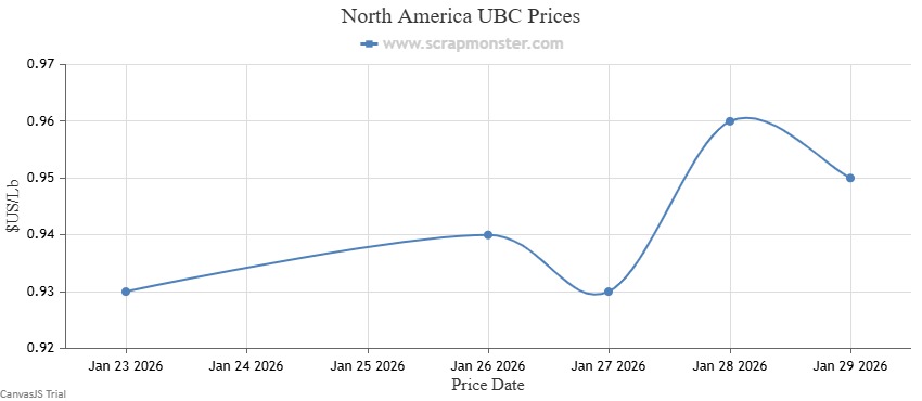 The price of E.C. Aluminum Wire on the Scrap Monster Price Index recorded a jump of 2.11% as of Thursday, January 29, 2026. 6063 Extrusions edged higher by 1.87% compared with the previous week. Old Cast prices increased from $0.92 per Lb to $0.94 per Lb during the week, while UBC prices also increased by 2.15% on a week-on-week basis.