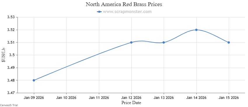 By the conclusion of the week ended January 15, 2026, the price of Red Brass had recorded a jump of 0.88% from $3.42 per Lb. Additionally, Yellow Brass prices edged higher by 0.93% week-on-week.
