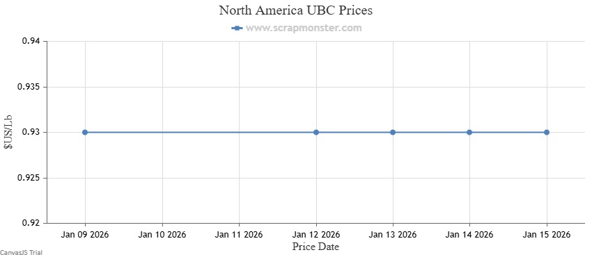 The price of E.C. Aluminum Wire on the Scrap Monster Price Index recorded a jump of 0.70% as of Thursday, January 15, 2026. 6063 Extrusions remained flat at $1.07 per pound, compared with the previous week. Old Cast prices were flat during the week. Additionally, UBC prices held stedy on a week-on-week basis.