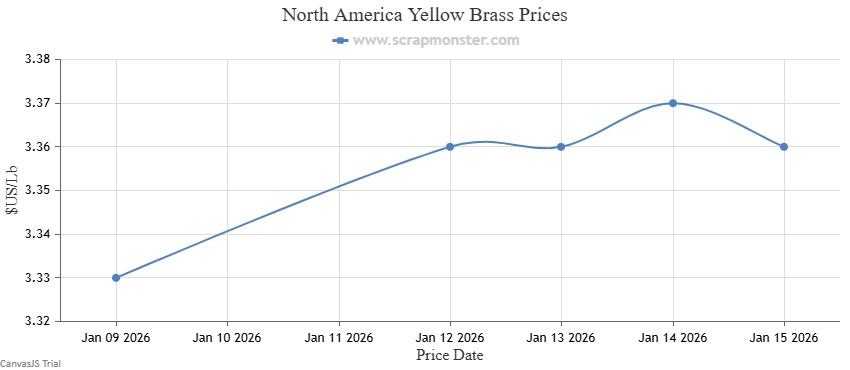 The price of Red Brass on the Scrap Monster Price Index recorded an increase of 0.86% as of Thursday, January 15, 2025. Yellow Brass prices also jumped higher on the Index, to close at $3.36 per Lb.