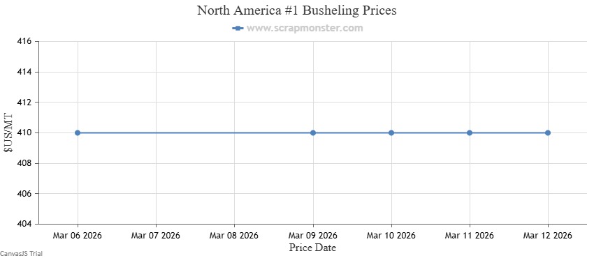 On the Scrap Monster Price Index, #1 HMS held steady as of Thursday, March 12, 2026. Shredded Auto Scrap and HMS 80/20 also saw no week-on-week change, while #1 Busheling remained firm throughout the period.