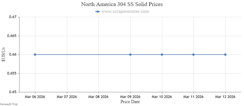 The price of 304 SS Solid on the Scrap Monster Price Index recorded no fluctuation as of Thursday, March 12, 2026.