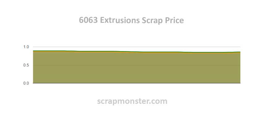 E.C. Aluminum Wire prices recorded a modest jump over the previous week, increasing by 0.95%. 6063 Extrusions prices were flat on the ScrapMonster Index, at the previous week’s price of $0.86 per Lb. Old Cast recorded no variation in price on the Index. UBC prices also held steady over the prior week.