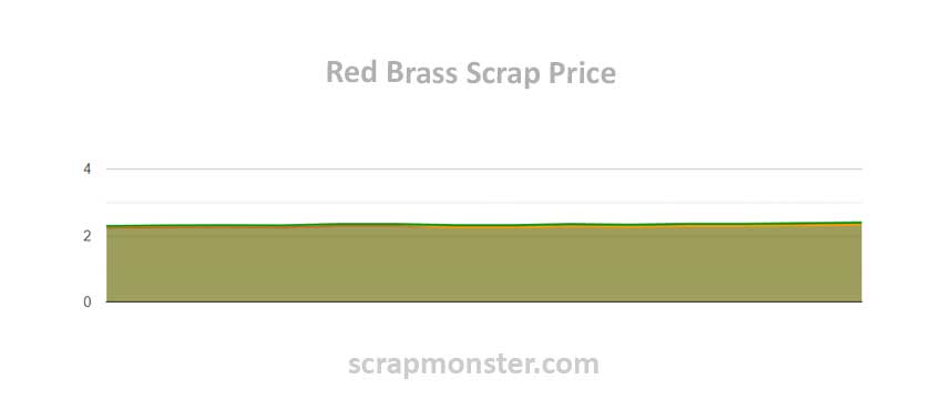 Red Brass's price, at $2.39 per pound as of Thursday, September 12, 2024, was up by 3.02% from the previous week. Also, over the previous week, Yellow Brass prices increased by $0.07 per pound.