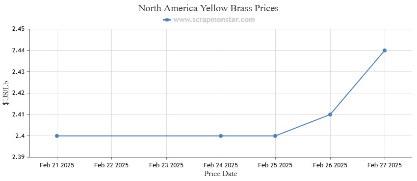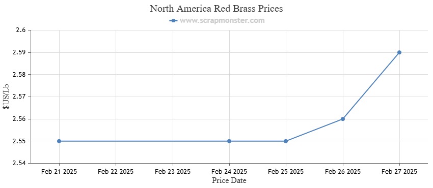 Red Brass was up 1.54% from the previous week at $2.63 a pound as of Thursday, February 27, 2025. In addition, Yellow Brass's price per pound increased 1.67% over the previous week.