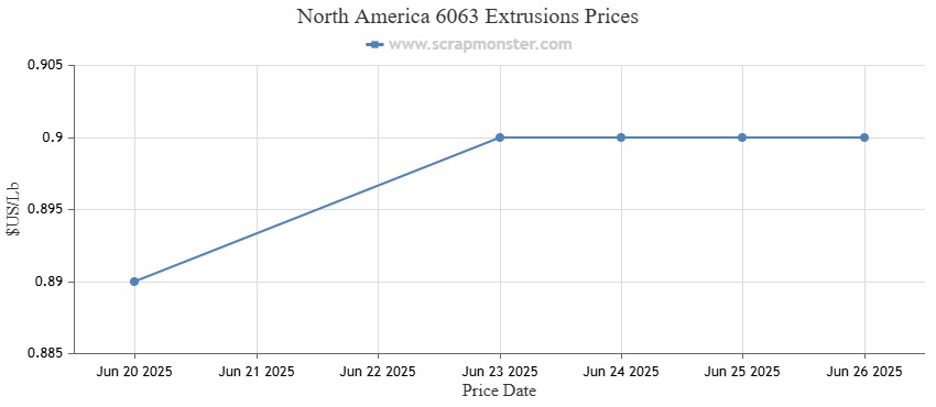 The price of E.C. Aluminum Wire inched higher by 0.88% on the Index in comparison to the previous week. The price of 6063 Extrusions at the conclusion of the week ending June 26, 2025, was $0.90 per pound, rising by 1.12% week-on-week. The index showed a 1.33% jump in Old Cast prices. In addition, UBC's prices were up by 1.32% over the week prior.