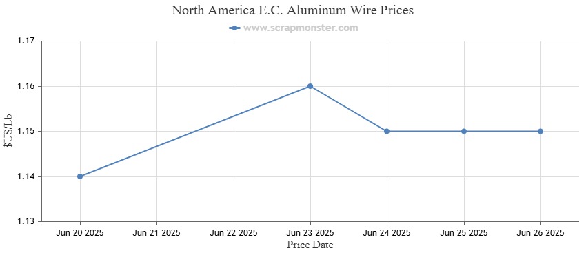 The price of E.C. Aluminum Wire reported an increase of 0.88% from the prior week. During the week ending June 26, 2025, the price of 6063 Extrusions was up by 1.12% when compared to the previous week. The Index showed that the price of Old Cast has edged higher by 1.33%. Additionally, UBC's prices witnessed a jump of 1.32% on the Index during the previous week.