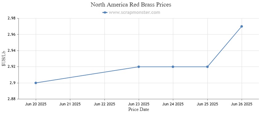 Red Brass was up notably by 2.33% from the previous week, trading at $3.07 per pound as of Thursday, June 26, 2025. Additionally, Yellow Brass's price per pound increased by 2.48% from the previous week.