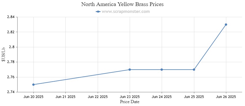 Over the last week, Red Brass's price edged higher by 2.41%. At the end of the week, Yellow Brass's price per pound also increased from $2.75 to $2.83.