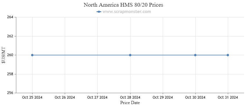 The prices of #1 HMS witnessed no change over the prior week. Shredded Auto Scrap also were flat during the week. At $260 per MT, the HMS 80/20 prices were unchanged on the Index. The prices of #1 Busheling posted no variation during the week ending October 31, 2024.