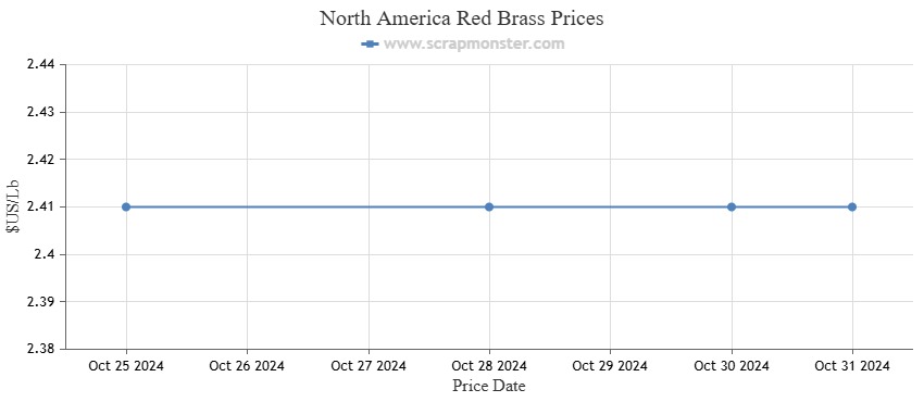 At $2.45 per pound, Red Brass's price remained unchanged from the week before. Additionally, the price of Yellow Brass, which is $2.31 a pound, did not change during the previous week.