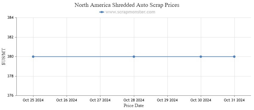 The prices of #1 HMS recorded no variation in prices during the week, with prices holding steady at $170 per MT on the ScrapMonster Index. Shredded Auto Scrap witnessed no change from the prior week’s level of $130 per MT over the week.