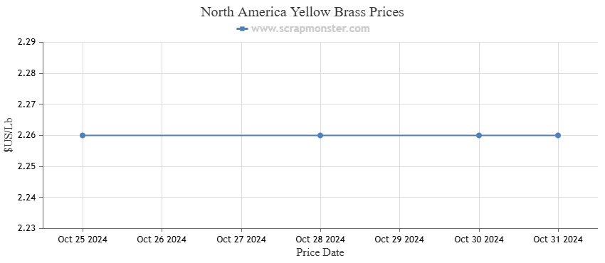 When compared to the previous week, Red Brass's prices showed no change. Additionally, Yellow Brass prices were unchanged from the previous week at $2.26 a pound.