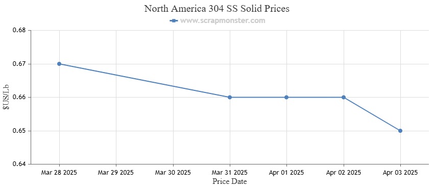304 SS Solid prices were down by 2.99% to close at $0.65 per pound for the week ending April 3, 2025.