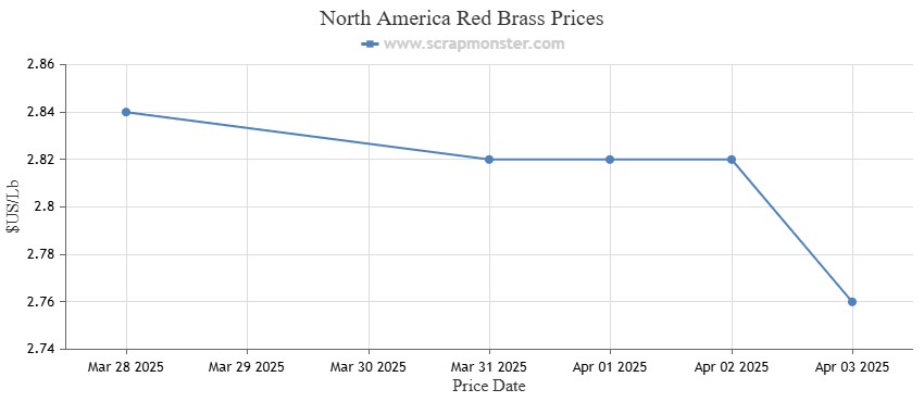 As of Thursday, April 3, 2025, Red Brass was trading at $2.81 a pound, down 2.77% from the previous week. Additionally, compared to the previous week, Yellow Brass's price per pound fell by 2.95%.