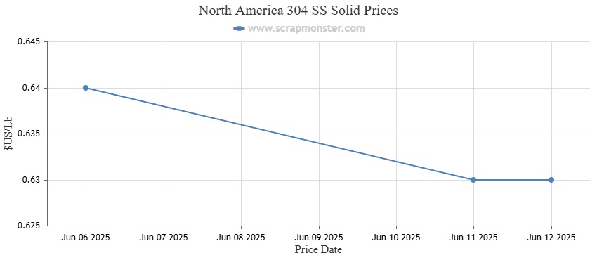 The preceding week, which ended on June 12, 2025, saw the price of 304 SS Solid drop by 1.56%. The commodity's price ended the week at $0.63 per pound.